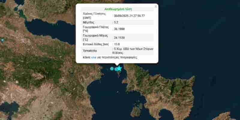 Σεισμός 5,2 Ρίχτερ στην Εύβοια, αισθητός στην Αθήνα