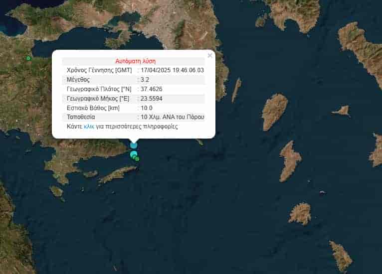 Σεισμός στον Πόρο – Αισθητός στην Αττική