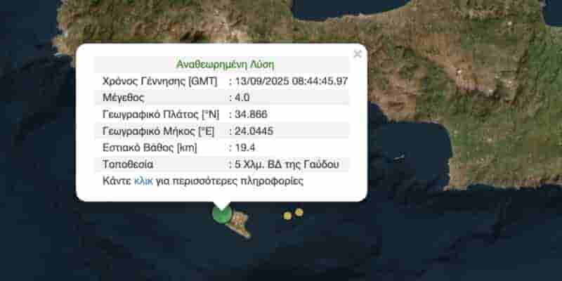 Οι πρώτες πληροφορίες για τη σεισμική δόνηση στη Γαύδο από το Γεωδυναμικό Ινστιτούτο