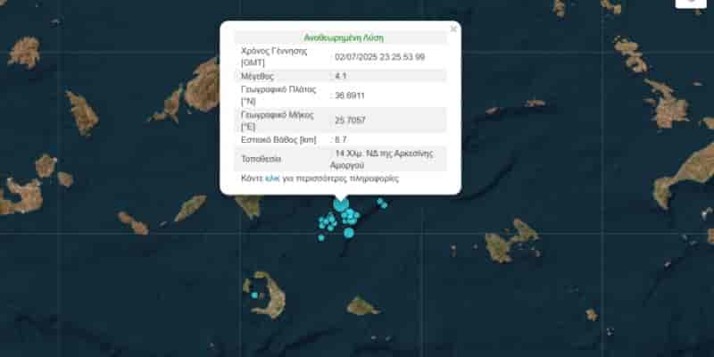 By ΕΙΔΗΣΕΙΣ 247 ShareShare ΡΟΗ ΕΙΔΗΣΕΩΝΣεισμός τώρα 4,1 ρίχτερ ανοιχτά της Αμοργού 3 Ιουλίου, 202561 views0Σεισμός τώρα 4,1 ρίχτερ ανοιχτά της Αμοργού Μετάβαση στην Πηγή Author:Κοινοποίηση Πως σας φάνηκε το αρθρο? ΑΠΙΘΑΝΟ 0 ΚΑΛΟ 0 ΜΕ ΑΡΕΣΕ 0 ΟΚ ΔΕΝ ΤΡΕΛΑΘΗΚΑ 0 ΧΑΧΑ ΕΛΑ ΠΛΑΚΑ ΚΑΝΕΙΣ 0