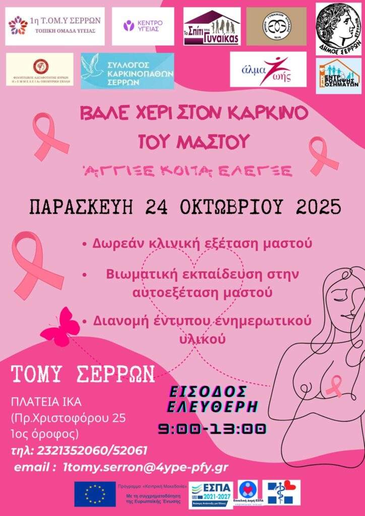 Σέρρες | Δράση ενημέρωσης για τον καρκίνο του μαστού