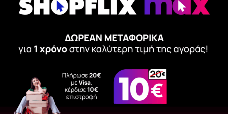 SHOPFLIX MAX: Δωρεάν μεταφορικά για 1 χρόνο στην καλύτερη τιμή της αγοράς
