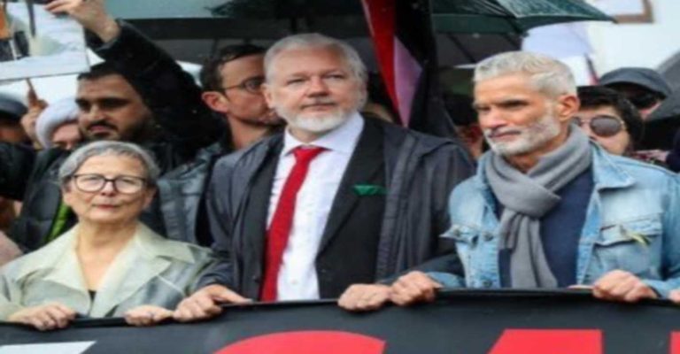 Σίδνεϊ: Σπάνια δημόσια εμφάνιση του Τζούλιαν Ασάνζ – Σε πορεία για τη Γάζα