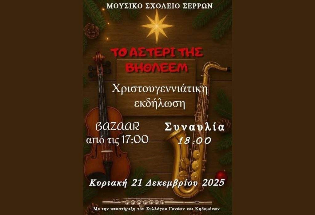 Σήμερα Κυριακή 21/2 η Χριστουγεννιάτικη Εκδήλωση στο Μουσικό Σχολείο Σερρών