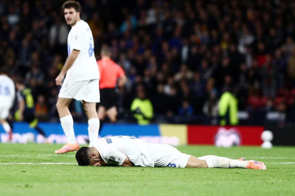 Οδυνηρή ήττα για την Εθνική μας, η οποία αν και προηγήθηκε με τον Τσιμίκα (62′), στη συνέχεια δέχθηκε τρία γκολ από τη Σκωτία (3-1) και πλέον το έργο της έγινε πολύ δύσκολο ακόμη και για τη 2η θέση.