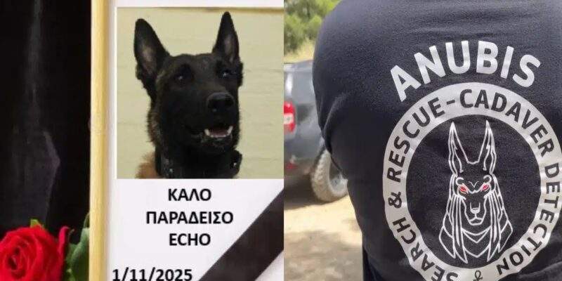 Σκότωσαν τον Echo! Θρήνος για τον σκύλο που συμμετείχε σε έρευνες για τα Τέμπη και για δολοφονίες