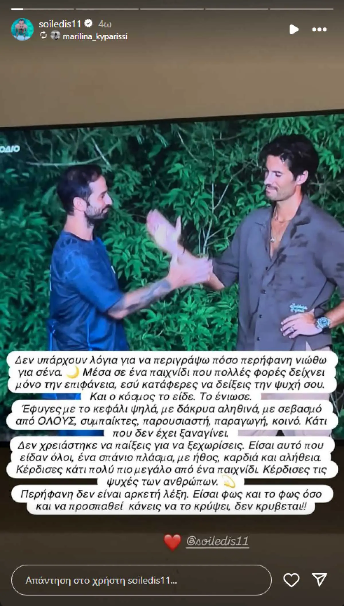 Σοϊλέδης: Το μήνυμα της συντρόφου μετά την έξοδό του από το Exathlon – «Αποχώρησες με το κεφάλι ψηλά»