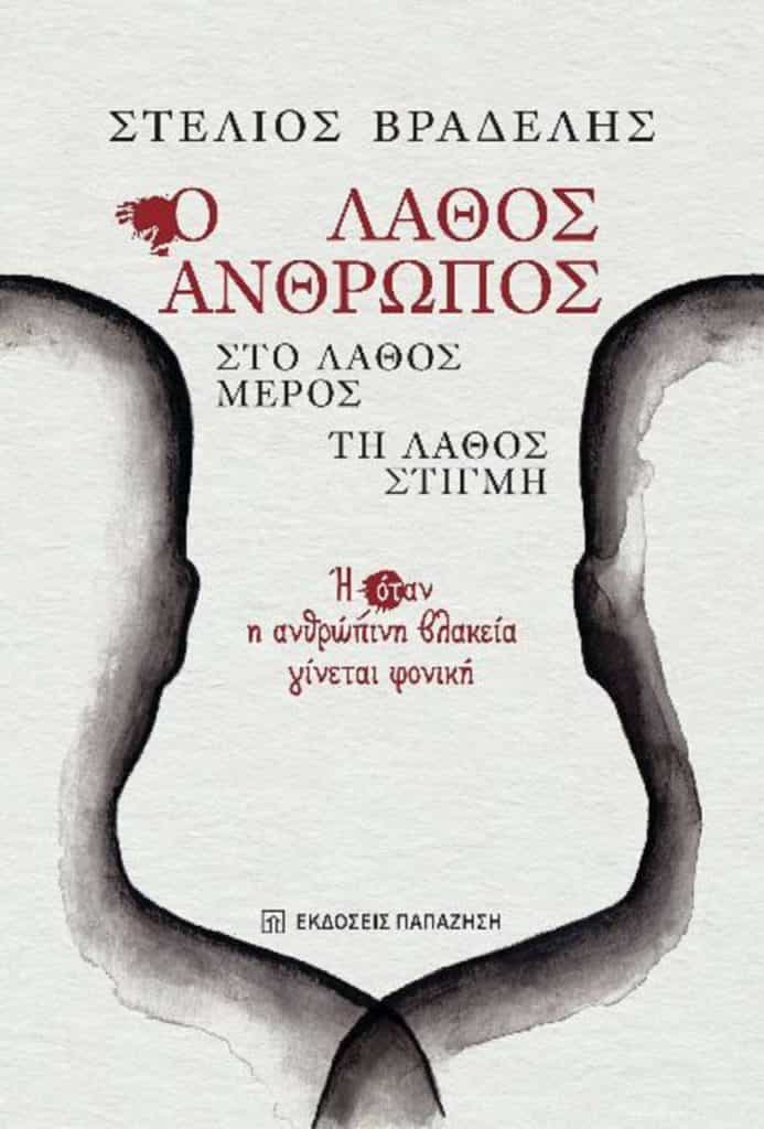Ο Στέλιος Βραδέλης, δημοσιογράφος και ραδιοφωνικός παραγωγός της ΕΡΤ στο Πρώτο πρόγραμμα κυκλοφόρησε το δεύτερο του βιβλίο «Ο λάθος άνθρωπος, στο λάθος μέρος, τη λάθος στιγμή, ή όταν η ανθρώπινη βλακεία γίνεται φονική» από τις εκδόσεις Παπαζήσης.