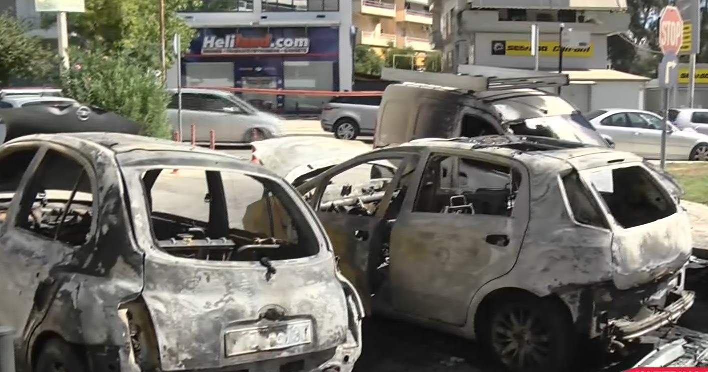 Στις φλόγες τέσσερα αυτοκίνητα στον Άλιμο [βίντεο]
