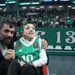 Όμορφες εικόνες στο κλειστό γυμναστήριο “Νίκος Γκάλης”. Ο Παναθηναϊκός κοντράρεται με τον Ολυμπιακό (20:15) και την αναμέτρηση έχει πάει να παρακολουθήσει από κοντά ο μικρός φίλος του ΠΑΟΚ, Γιάννης Παπαστεφανάκης. Ο μικρός Γιαννάκης που είναι γνωστό πόσο αγαπάει τον αθλητισμό, μία μέρα μετά αφού βρέθηκε στο Περιστέρι για να δει από κοντά το Ατρόμητος – Ολυμπιακός, πήγε και στο ντέρμπι “αιωνίων” στο μπάσκετ. Μάλιστα, φοράει την φανέλα του αγαπημένου του παίκτη από πλευράς Παναθηναϊκού, του Κώστα Σλούκα.//ΓΓ.
