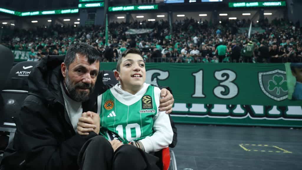 Όμορφες εικόνες στο κλειστό γυμναστήριο “Νίκος Γκάλης”. Ο Παναθηναϊκός κοντράρεται με τον Ολυμπιακό (20:15) και την αναμέτρηση έχει πάει να παρακολουθήσει από κοντά ο μικρός φίλος του ΠΑΟΚ, Γιάννης Παπαστεφανάκης. Ο μικρός Γιαννάκης που είναι γνωστό πόσο αγαπάει τον αθλητισμό, μία μέρα μετά αφού βρέθηκε στο Περιστέρι για να δει από κοντά το Ατρόμητος – Ολυμπιακός, πήγε και στο ντέρμπι “αιωνίων” στο μπάσκετ. Μάλιστα, φοράει την φανέλα του αγαπημένου του παίκτη από πλευράς Παναθηναϊκού, του Κώστα Σλούκα.//ΓΓ.
