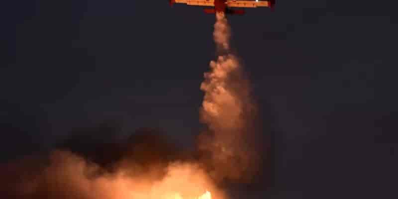Συγκλονιστικά πλάνα: Canadair κάνει ρίψεις στη φωτιά της Κερατέας μετά τη δύση του ηλίου
