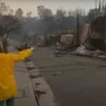 Η Tur καθώς περπατούσε στη καμένη πλέον γειτονιά, βρέθηκε μπροστά στο επίσης καμένο σπίτι των παιδικών της χρόνων.