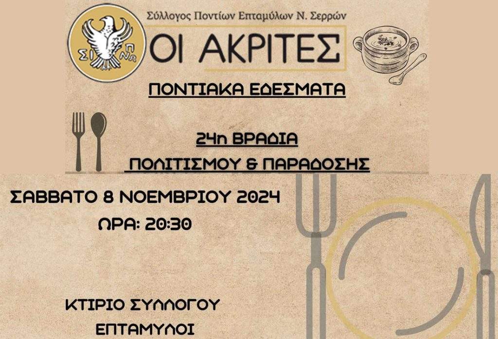 Σύλλογος Ποντίων Επταμύλων Ν.Σερρών «ΟΙ ΑΚΡΙΤΕΣ» – Βραδιά Ποντιακών Εδεσμάτων