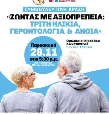 Συμβουλευτική Δράση στην Ξυλαγανή: Ζώντας με Αξιοπρέπεια: Τρίτη Ηλικία, Γεροντολογία & Άνοια