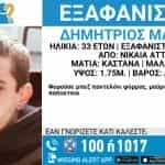 Αγωνία στη Νίκαια για την εξαφάνιση από το βράδυ της Πέμπτης (02/01/2025) του 33χρονου Δημήτρη Μακρινού.