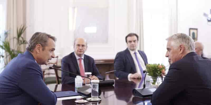 Ο Πρωθυπουργός Κυριάκος Μητσοτάκης συναντήθηκε με τον Διευθύνοντα Σύμβουλο του ομίλου UniCredit Αντρέα Ορσέλ και τον Διευθύνοντα Σύμβουλο της Alpha Bank Βασίλη Ψάλτη, στο Μέγαρο Μαξίμου.