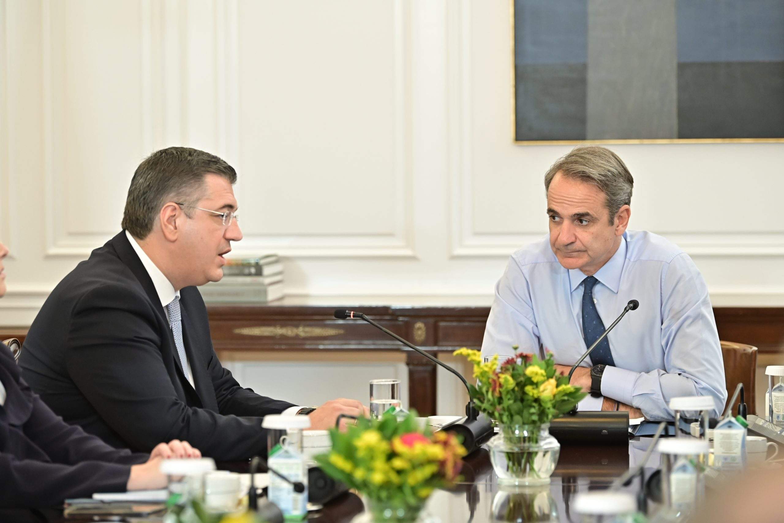 Συνάντηση Μητσοτάκη με τον Ευρωπαίο Επίτροπο Βιώσιμων Μεταφορών και Τουρισμού Απόστολο Τζιτζικώστα