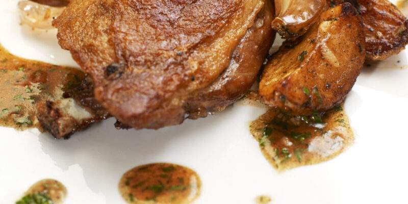 Συνταγή για χοιρινή πανσέτα με σάλτσα πορτοκαλιού και κονιάκ