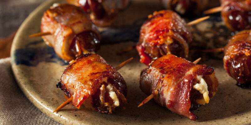 Συνταγή για χουρμάδες γεμιστούς με μπλε τυρί και καρύδια, τυλιγμένοι με μπέικον