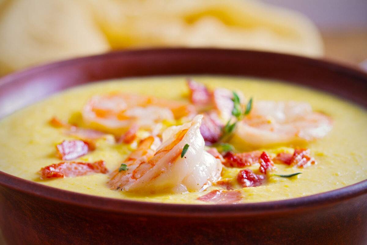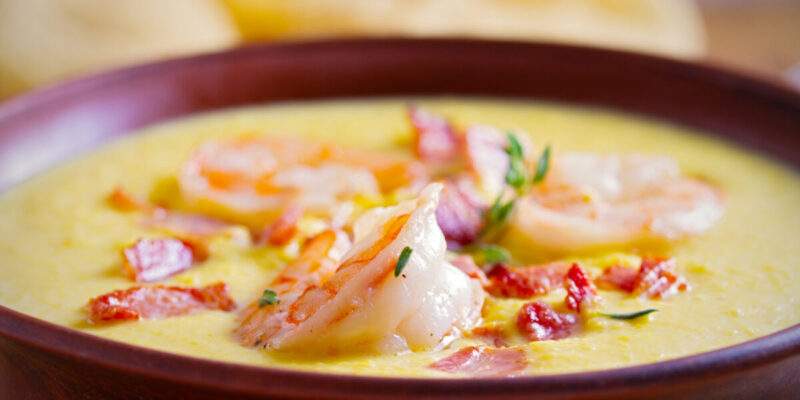 Συνταγή για σούπα βελουτέ ψητής κολοκύθας με γαρίδες