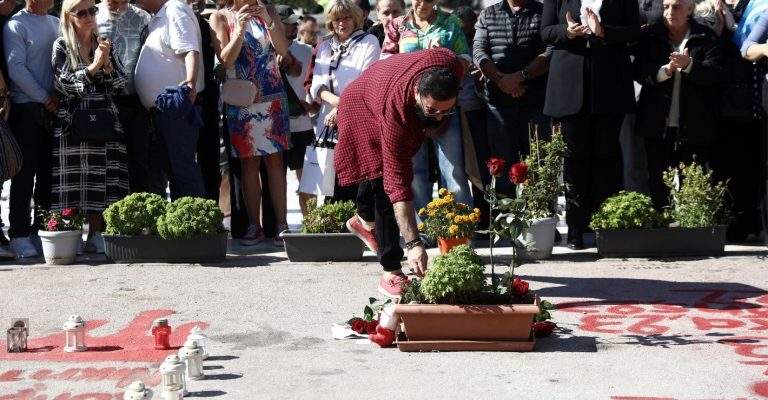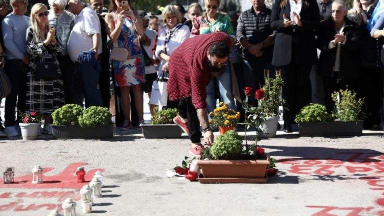 Σύνταγμα: Πολίτες και συγγενείς άφησαν λουλούδια στο μνημείο των θυμάτων των Τεμπών