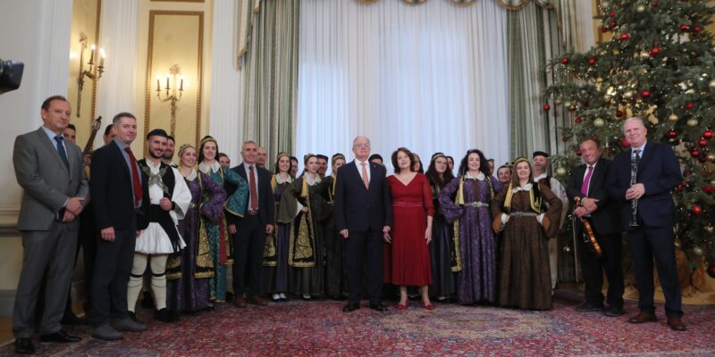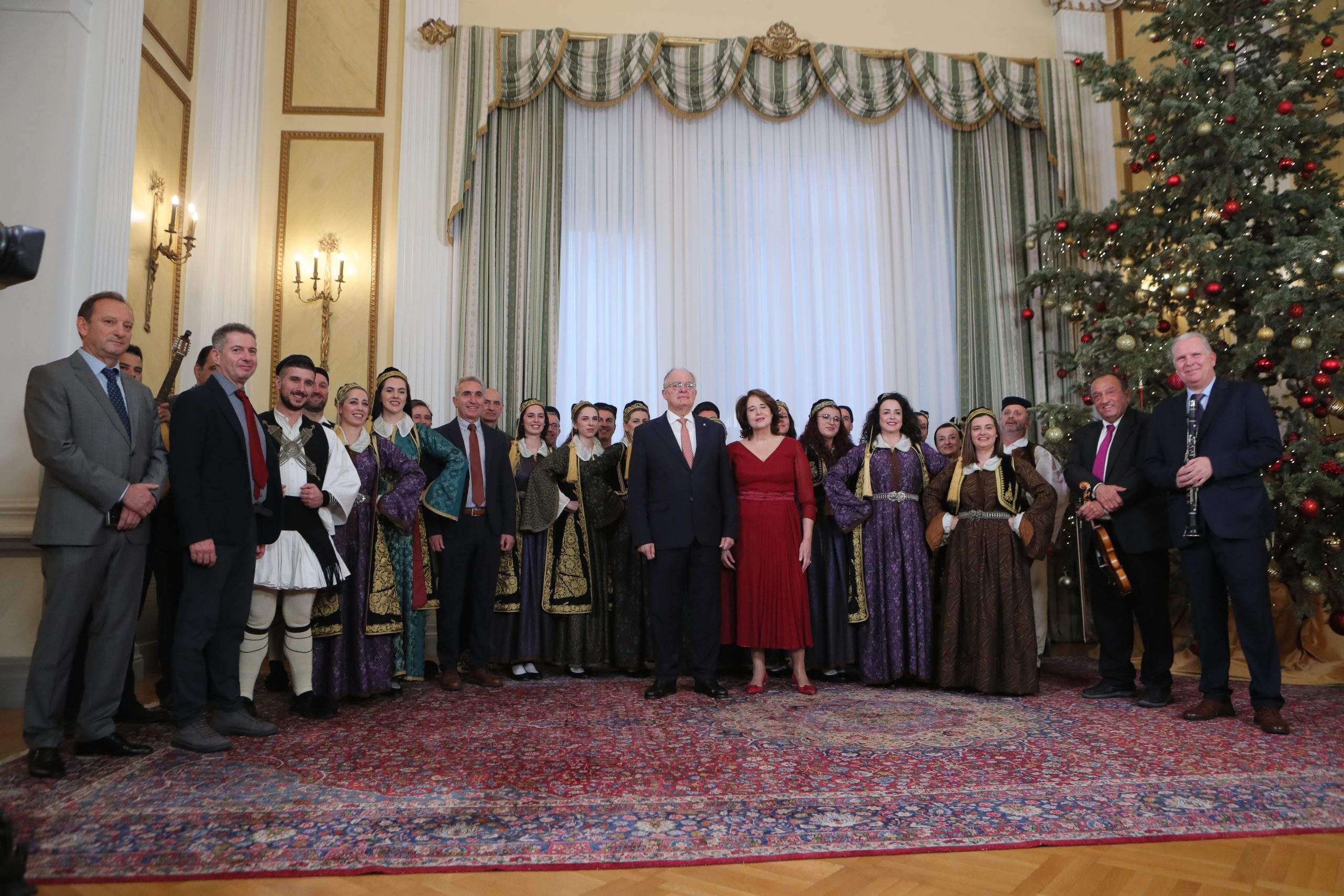Η Μπάντα των Ενόπλων Δυνάμεων και η Προεδρική Φρουρά έψαλαν τα κάλαντα Χριστουγέννων στον Πρόεδρο της Δημοκρατίας Κωνσταντίνο Αν. Τασούλα και τη σύζυγό του Φανή Σταθοπούλου.