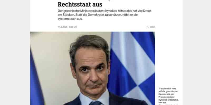 Η γερμανική εφημερίδα εξαπολύει σφοδρή επίθεση στον Έλληνα πρωθυπουργό, κατηγορώντας τον για σκάνδαλα, συγκάλυψη και συστηματική υπονόμευση του κράτους δικαίου