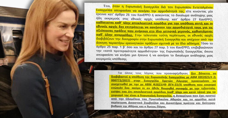 Τέμπη – Αποκάλυψη: Επιχείρησαν να πάρουν τη δικογραφία της 717 από την Ευρωπαία Εισαγγελέα Πόπη Παπανδρέου και να την δώσουν στον Μπακαΐμη