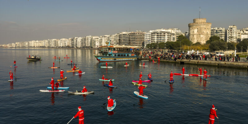 Θεσσαλονίκη: Κωπηλασία γεμάτη χρώμα με φόντο τον Θερμαϊκό στο «5o Santa SUP» (Εικόνες)