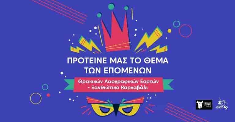 ΘΛΕ : Γίνε εσύ η έμπνευση του Ξανθιώτικου Καρναβαλιού 2026 – Πρότεινε το θέμα που θα δώσει χρώμα, παλμό και φαντασία στις εκδηλώσεις.