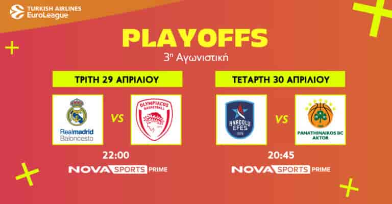 Το μπασκετικό υπερθέαμα της EuroLeague συνεχίζεται με τα Playoffs αποκλειστικά στο Novasports!