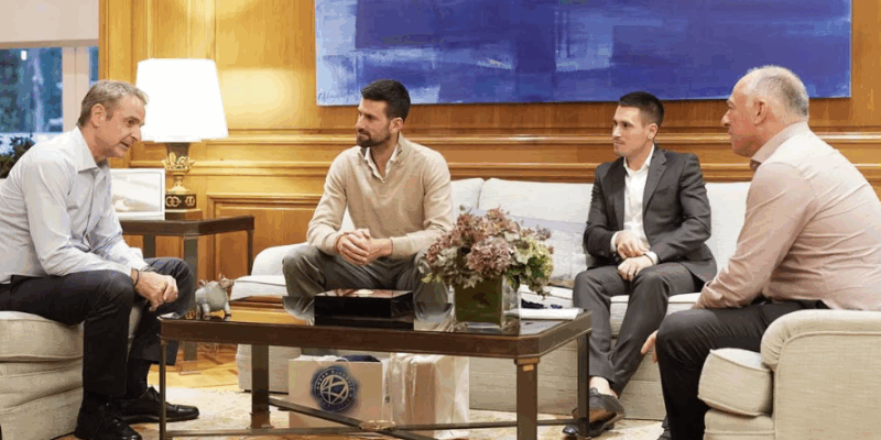 «Σήμερα το απόγευμα υποδέχθηκα στο γραφείο μου τον θρύλο του τένις Νόβακ Τζόκοβιτς, τον αδερφό του Τζόρτζε και τον πρόεδρο της ελληνικής φίλαθλης ομοσπονδίας αντισφαίρισης Θοδωρή Γκλαβά», ανέφερε χαρακτηριστικά ο Πρωθυπουργός.
