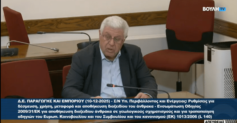Τοποθέτηση Πασχαλίδη σχετικά με την αποθήκευση CO2 στη θαλάσσια περιοχή του Πρίνου Θάσου
