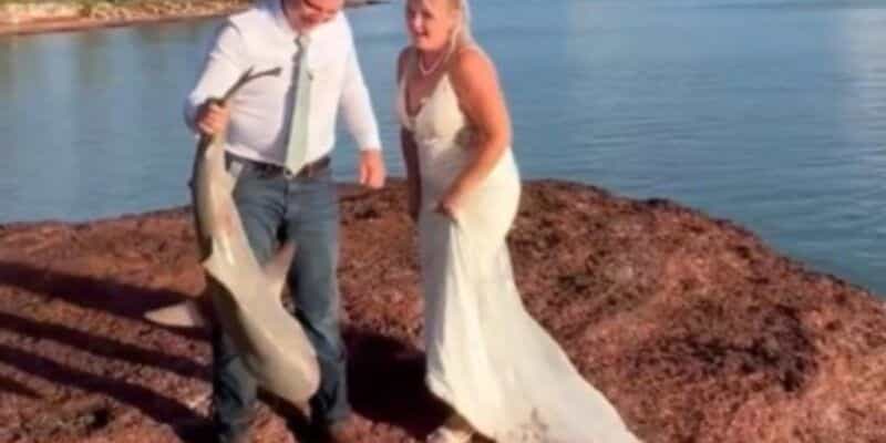 Τρελάθηκαν οι καλεσμένοι: Νύφη έκανε πως ψάρευε για τις φωτογραφίες του γάμου και…έπιασε καρχαρία