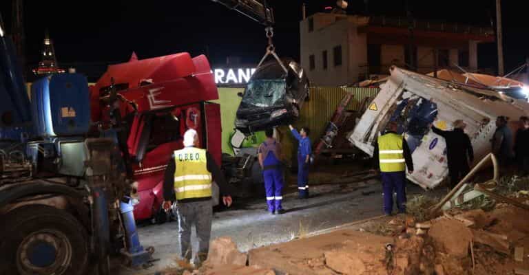 Τροχαίο με ανατροπή νταλίκας: «Θα είχε πέσει πάνω μου» – Στο νοσοκομείο ο οδηγός