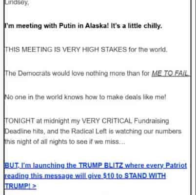 TRUMP BLITZ: Ο Τραμπ κινητοποιεί τη βάση του για δωρεές ενόψει της συνάντησης με τον Πούτιν – ΦΩΤΟ