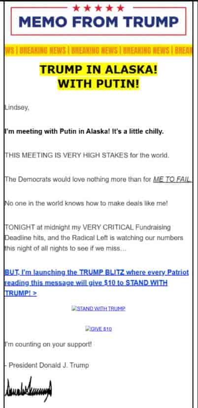 TRUMP BLITZ: Ο Τραμπ κινητοποιεί τη βάση του για δωρεές ενόψει της συνάντησης με τον Πούτιν – ΦΩΤΟ