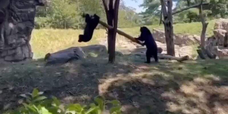 Τρυφερό βίντεο δείχνει δύο αρκούδες να κάνουν τραμπάλα με ένα κλαδί