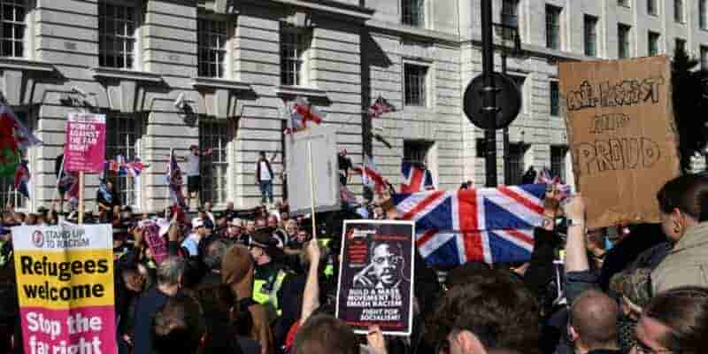 Το μεσημέρι δεκάδες χιλιάδες διαδηλωτές είχαν συγκεντρωθεί στους δρόμους νότια του ποταμού Τάμεση, προτού κατευθυνθούν προς το Γουέστμινστερ, έδρα του βρετανικού κοινοβουλίου στο πλαίσιο της πορείας «Unite the Kingdom»