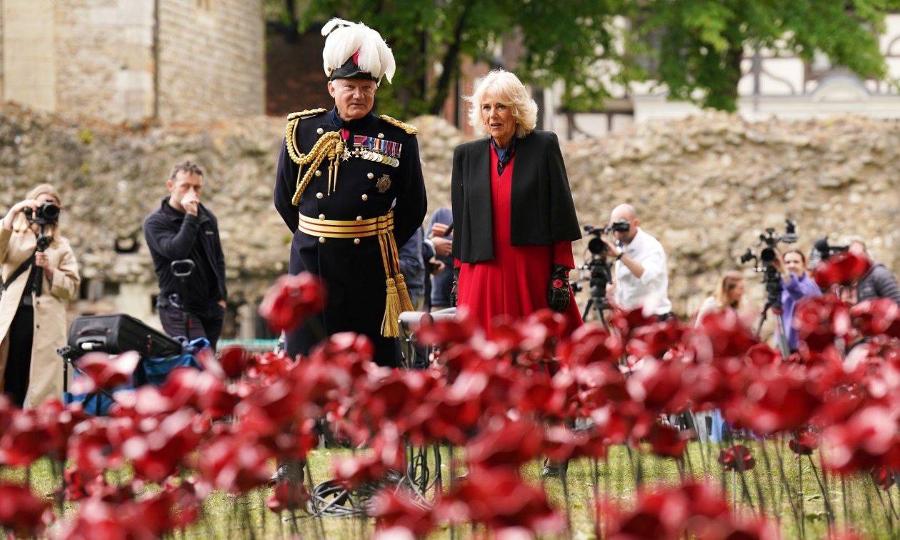 Η βασίλισσα Καμίλα επισκέφθηκε ένα μνημείο από παπαρούνες στο πλαίσιο των εκδηλώσεων για το τέλος του Β΄ Παγκοσμίου Πολέμου