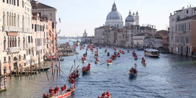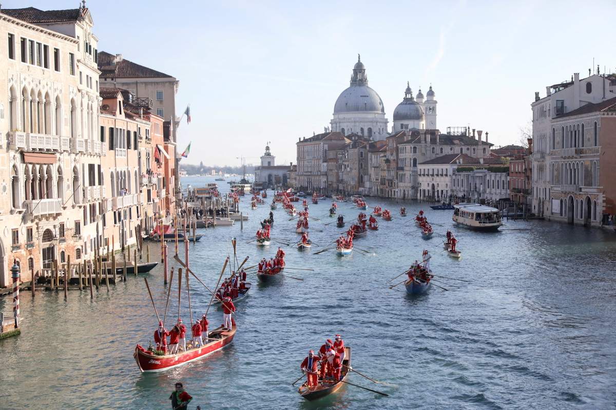 Βενετία: Άγιοι Βασίληδες αντικατέστησαν τα έλκηθρα με γόνδολες και «πλημμύρισαν» το Μεγάλο Κανάλι