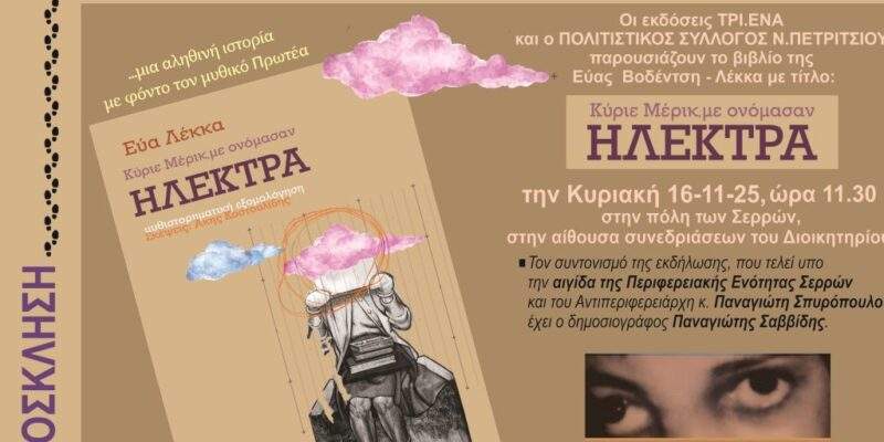 Βιβλιοπαρουσίαση | Εύα Βοδέντση – Λέκκα: «Κύριε Μέρικ, με ονόμασαν Ηλέκτρα»