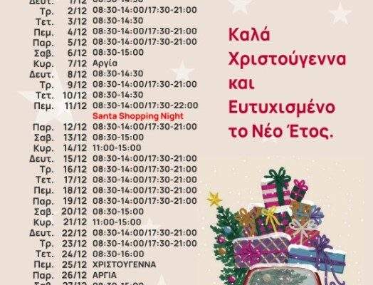 Ξάνθη : Ανακοινώθηκε το εορταστικό ωράριο για τα Χριστούγεννα και την Πρωτοχρονιά