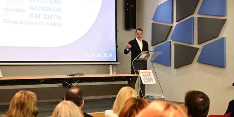 Eιδικότερα ο Κυριάκος Μητσοτάκης παρέστη το πρωί στην εκδήλωση του ΕΟΠΥΥ όπου παρουσιάστηκε η νέα υπηρεσία αποστολής φαρμάκων υψηλού κόστους κατ’ οίκον, υπηρεσία που παρέχεται δωρεάν για πρώτη φορά από ασφαλιστικό οργανισμό στην Ευρώπη.